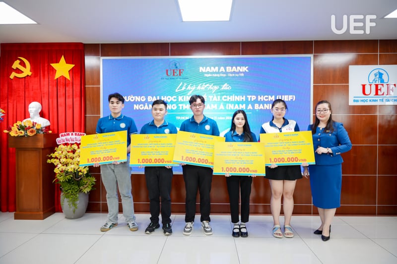Trên tinh thần cùng nhau đào tạo ra nguồn nhân lực chất lượng cho thị trường lao động, Nam Á Bank đã tiếp sức và tuyên dương sự nỗ lực học tập của sinh viên UEF bằng 10 suất học bổng giá trị. Hy vọng món quà này sẽ là động lực để UEFers tiếp tục cố gắng trong học tập và phát triển bản thân.