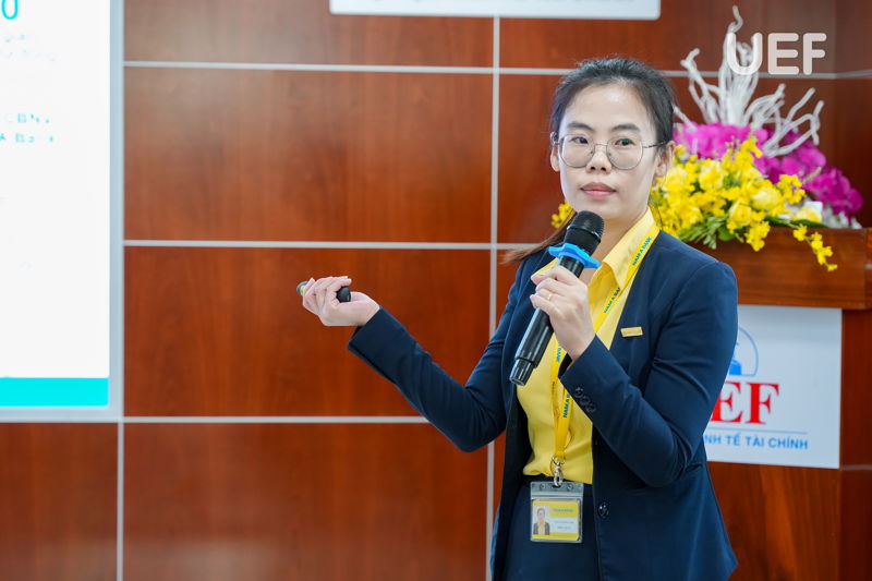 Trong khuôn khổ chương trình, sinh viên UEF còn được tìm hiểu về chủ đề “Tăng trưởng xanh - Phát triển bền vững, trách nhiệm và hành động của chúng ta” qua phần chia sẻ hữu ích của diễn giả Phan Thị Bích Vân - Chuyên viên cao cấp Chăm sóc và Phát triển sản phẩm chuỗi, Phòng Phát triển đối tác và Liên kết Nam Á Bank.