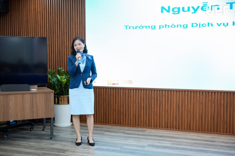 Trong phần chia sẻ chuyên môn, bà Nguyễn Thị Hồng Lam với hơn 18 năm kinh nghiệm trong nghề đã chia sẻ về hệ thống dịch vụ thanh toán và quy trình làm việc tại ngân hàng, giúp sinh viên hiểu rõ hơn về nghiệp vụ thực tế. Tiếp đó, bà Nguyễn Thị Thúy Minh cũng chia sẻ nhiều kiến thức hữu ích về công tác kiểm soát giao dịch, xu hướng chuyển đổi số nghề nghiệp trong thời đại mới.