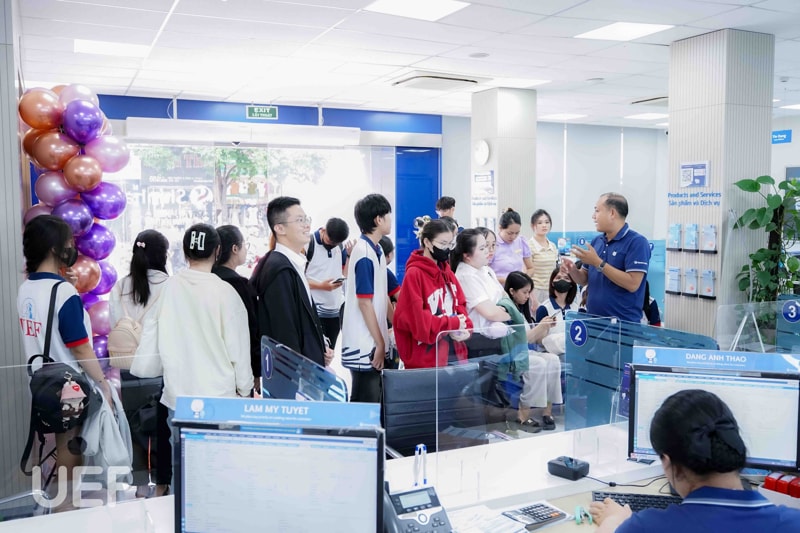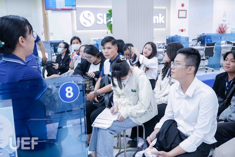 Tại doanh nghiệp, UEFers đã có cơ hội được tham quan và tìm hiểu về hệ thống ngân hàng số cũng như các công việc thực tế ứng dụng kỹ thuật số của 3 phòng ban: Quản lý tín dụng - giao dịch viên, tín dụng cá nhân và tín dụng doanh nghiệp. Đồng thời, các bạn đã được các anh chị nhân viên hướng dẫn trải nghiệm dịch vụ kỹ thuật số tại ngân hàng cũng như tính thực tiễn của các nghiệp vụ đã được học tại trường.