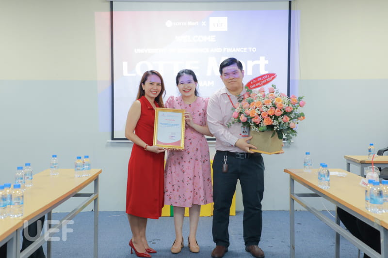 Tại đây, sinh viên đã được giới thiệu về lịch sử hình thành, phát triển và định hướng của tập đoàn Lotte nói chung cũng như hệ thống siêu thị Lotte nói riêng. Bên cạnh sự khác biệt về chất lượng hàng hóa, Lotte Mart tiếp tục khẳng định vị trí của mình trong việc đào tạo nguồn nhân lực và mang đến những trải nghiệm mua sắm chất lượng cho khách hàng. Đây là những thông tin bổ ích góp phần giúp các UEFers xác định mình có phù hợp với doanh nghiệp hay không, đồng thời nắm bắt tình hình thị trường hiện tại.
