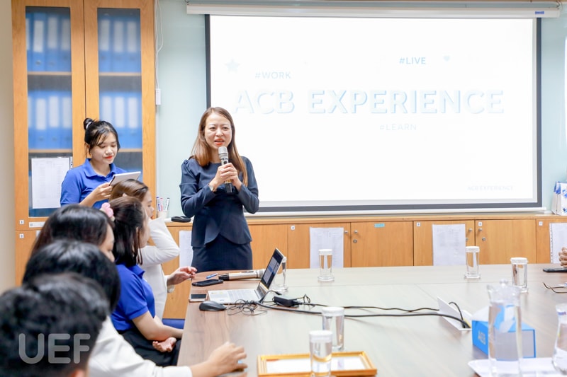 Việc tham quan doanh nghiệp không chỉ giúp các bạn hình dung về môi trường làm việc mà đây là cơ hội kết nối giữa nhà tuyển dụng với ứng viên tiềm năng. Là một trong những đối tác chiến lược của UEF, ngân hàng ACB luôn có những hoạt động hợp tác, tăng cường cơ hội thực tập, việc làm cho sinh viên. Thông qua chương trình “ACB Experience”, các bạn có cái nhìn cụ thể hơn về môi trường làm việc mình mong muốn và có sự chuẩn bị tốt nhất cho con đường sự nghiệp của bản thân.