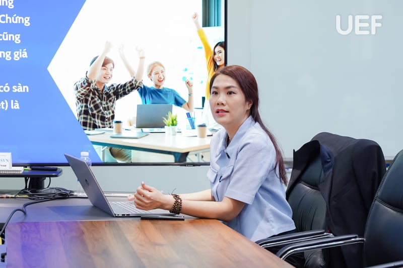 Đến với buổi kiến tập, các bạn sinh viên đã được cung cấp cái nhìn tổng quan về thị trường chứng khoán, bao gồm tìm hiểu các thông tin liên quan đến khái niệm, quy định niêm yết cổ phiếu cũng như cách thức vận hành của 2 sở giao dịch chứng khoán chính thức là HNX và HOSE. Bằng vốn kinh nghiệm thực tiễn và góc nhìn chuyên môn, chị Đinh Thị Kim Cương đã giúp UEFers hiểu hơn về các thuật ngữ cũng như từ vựng chuyên ngành, từ đó xây dựng nền tảng kiến thức cần thiết để phát triển sự nghiệp trong tương lai.