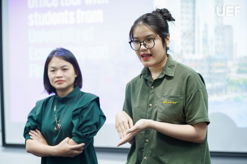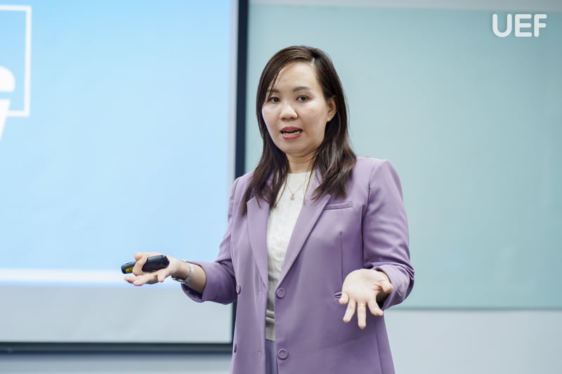 Đặc biệt, phần chia sẻ từ cựu sinh viên UEF hiện đang làm việc tại đây đã mang lại góc nhìn gần gũi, thực tế cho các bạn tham dự. Bằng chính trải nghiệm cá nhân, chị Đoàn Ngọc Minh đã gửi gắm nhiều lời khuyên thiết thực đến thế hệ mới Nhà UEFers, nhấn mạnh vào việc không ngừng rèn luyện kỹ năng tin học văn phòng, chủ động nâng cao trình độ tiếng Anh và chuẩn bị kỹ lưỡng về tâm thế lẫn kiến thức để thích nghi với môi trường làm việc chuyên nghiệp, năng động.