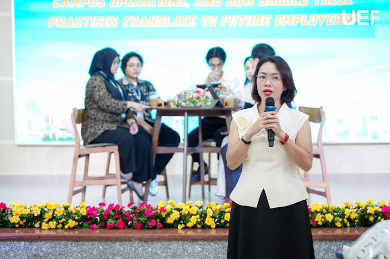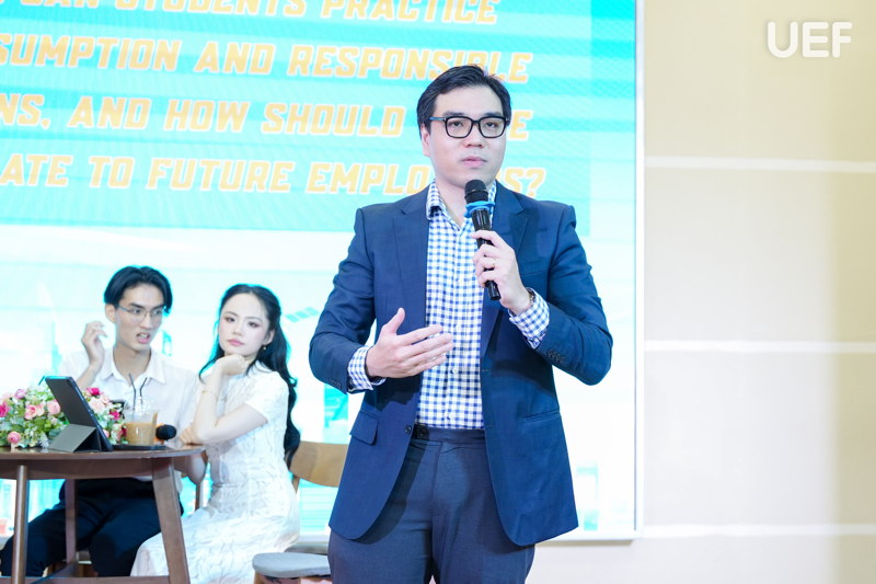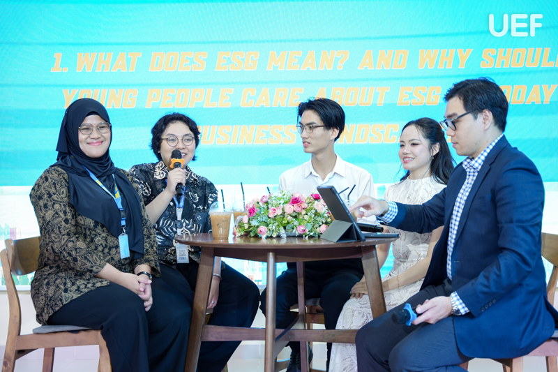 Ở phần thảo luận, các diễn giả cùng nhìn nhận ESG đã trở thành tiêu chuẩn đánh giá quan trọng đối với doanh nghiệp toàn cầu và tập trung bàn luận về mối liên hệ giữa ESG và 17 Mục tiêu Phát triển bền vững (SDGs) của Liên Hợp Quốc. Bên cạnh đó, các bạn cũng đồng tình với nhau rằng, trường đại học là “phiên bản thu nhỏ của xã hội”, nơi mỗi sinh viên đều có thể thực hành SDGs thông qua những hành động cụ thể như giảm rác thải nhựa, tiết kiệm năng lượng, hay tổ chức các chiến dịch cộng đồng hướng đến phát triển bền vững.