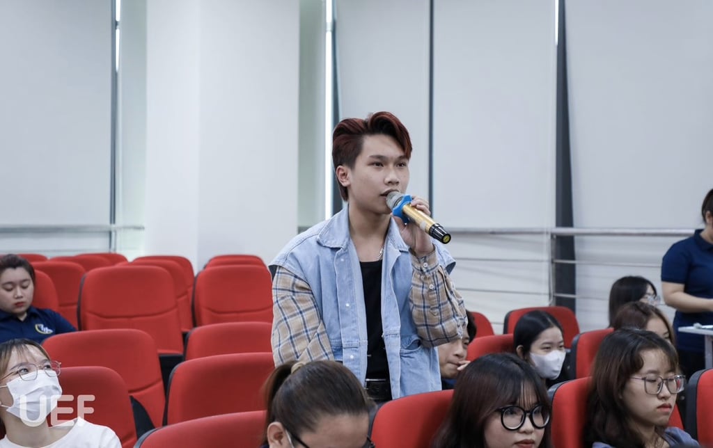 Tiếp đến, bà Phan Nguyệt Vi cũng đánh giá cao tinh thần học tập tại UEF: “Qua tất cả các lần tham gia các hoạt động của UEF, tôi rất ấn tượng tinh thần năng nổ học tập của sinh viên trường. Các bạn không chỉ lắng nghe và đặt câu hỏi tại các buổi trao đổi mà các bạn còn gửi mail đến cho tôi để trao đổi về các nội dung, các vấn đề trong thực tế. Chính các bạn đã tạo động lực chúng tôi đến và tham gia các hoạt động cùng sinh viên Nhà UEF.”