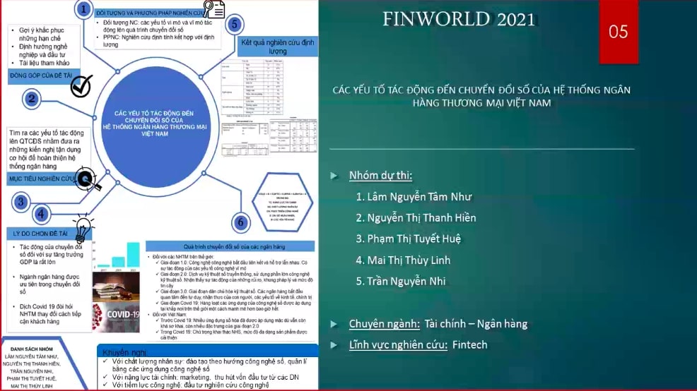 Cuộc thi Finworld 2021 đã chọn ra những đề tài sáng tạo, khả thi về nhiều lĩnh vực thuộc Tài chính - Thương mại