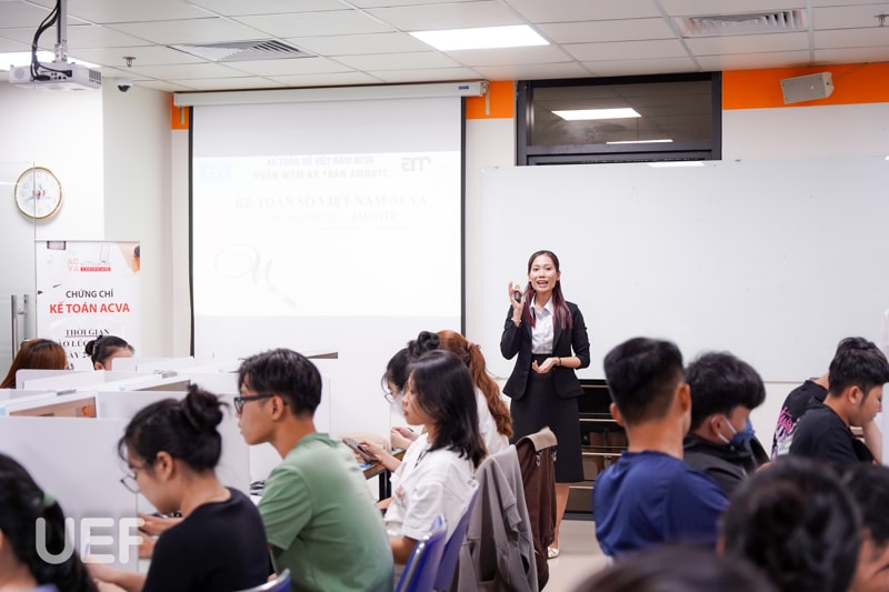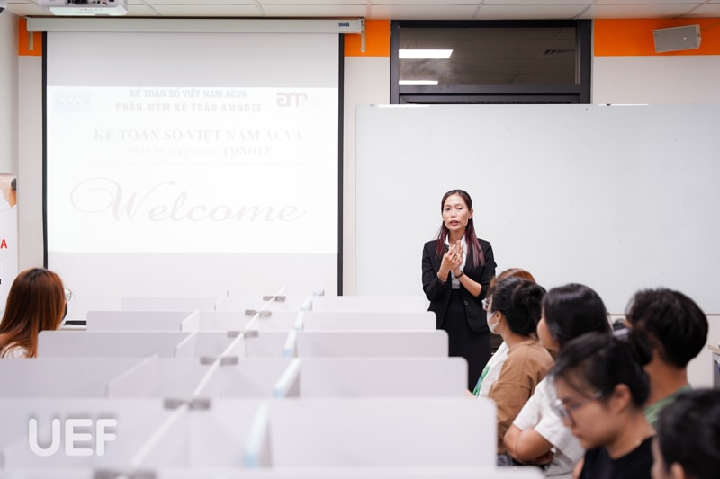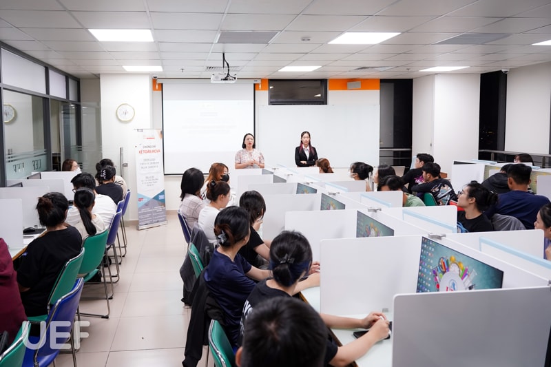Thấu hiểu câu chuyện này, Khoa Tài chính - Kế toán UEF thường xuyên tổ chức các hoạt động nhằm tăng cường kiến thức thực tiễn và khả năng thực hành nghề nghiệp cho sinh viên. Khoa đã phối hợp với Hiệp hội Kế toán và Kiểm toán Việt Nam (VAA) cùng công ty NC9 tổ chức lớp ngoại khóa thực hành "Kế toán số". Đây là khóa học hoàn toàn miễn phí và sinh viên có thể được cấp chứng chỉ nếu thi đạt kết quả tốt vào cuối khóa. Buổi học đầu tiên đã diễn ra vào tối 13/5 vừa qua.