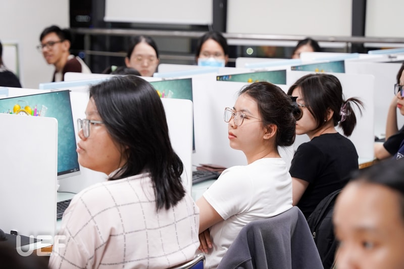 Bên cạnh các học phần chính khóa, sinh viên Khoa Tài chính - Kế toán UEF còn thường xuyên được tham gia vào các lớp học ngoại khóa hoàn toàn miễn phí cùng các chuyên gia đến từ doanh nghiệp. Khóa học này cũng không ngoại lệ, các bạn không chỉ được ôn lại những kiến thức nghề căn bản mà còn được bồi dưỡng, hướng dẫn thực hành trên các phần mềm khác nhau. Việc tổ chức chuỗi hoạt động này đáp ứng phương châm đào tạo gắn kết thực tiễn mà Nhà trường đã đề ra.