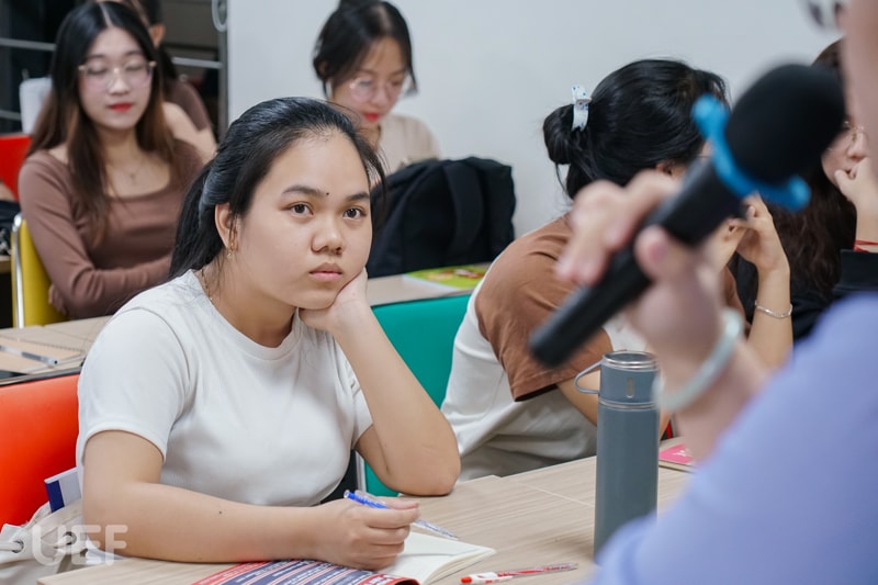 Đồng hành với sinh viên UEF, chuyên gia Phan Thị Thanh Hà đã giúp các bạn củng cố lại những kiến thức về thanh toán quốc tế. Trong đó, diễn giả nhấn mạnh thương mại quốc tế đã mở ra nhiều cơ hội nhưng cũng không kém thách thức cho nghề nghiệp. Những trở ngại về ngôn ngữ, luật pháp, văn hóa, khoảng cách, rủi ro vận tải, rủi ro trong giao dịch,... là điều dễ dàng nhận thấy.