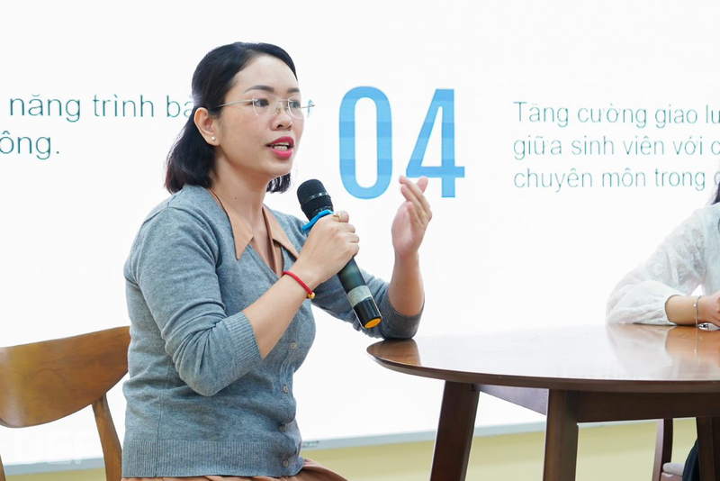 Tiếp đó, TS. Hà Thị Thủy cũng có những chia sẻ về ý nghĩa của chương trình: “Lý do ra đời của chương trình là bởi Khoa thấy được các bạn sinh viên Nhà UEF rất tài năng và sân chơi này sẽ là cơ hội để các bạn thể hiện được năng lực của mình. Tiếp đến, đây là môi trường để phát triển năng lực quan trọng của sinh viên - năng lực tự học. Cuối cùng, một trong những kỹ năng được doanh nghiệp đánh giá cao đó chính là kỹ năng thuyết trình trước đám đông, kỹ năng biện luận cũng sẽ được rèn luyện qua chương trình này.”