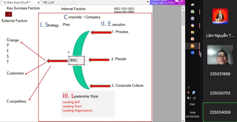Thứ hai, các bạn được tìm hiểu về cấu trúc mô hình BSC cũng như mối quan hệ giữa các thước đo trong mô hình. ThS. Daniel Saputro M.M nhấn mạnh: “Hoạt động của doanh nghiệp sẽ trơn tru và năng suất hơn (thước đo quá trình hoạt động nội bộ) nếu chú trọng đào tạo nhân viên và xây dựng được một nền văn hoá chia sẻ thông tin hiện đại (thước đo học tập và phát triển). Khi nền tảng nội bộ bền vững, doanh nghiệp sẽ có khả năng tạo ra giá trị và chăm sóc khách hàng tốt hơn (tiêu chí khách hàng) thì khách hàng sẽ cảm thấy hài lòng, chắc chắn họ sẽ ủng hộ sản phẩm/dịch vụ của bạn nhờ vậy mà doanh nghiệp thu về doanh thu và lợi nhuận cao (tiêu chí tài chính)”.
