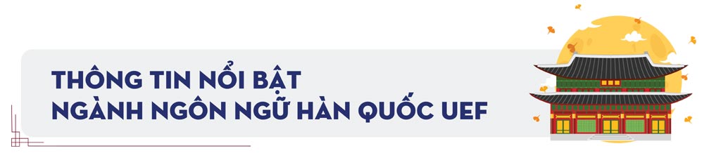 Tại UEF, Sinh viên ngành ngôn ngữ Hàn Quốc sẽ được trang bị các kiến thức từ cơ bản đến nâng cao về ngôn ngữ và văn hóa Hàn Quốc. Cạnh đó, các bạn còn được học tập kiến thức lịch sử phát triển quốc gia đời sống kinh tế, chính trị, xã hội, tăng cường tiếng Anh và các kỹ năng mềm.