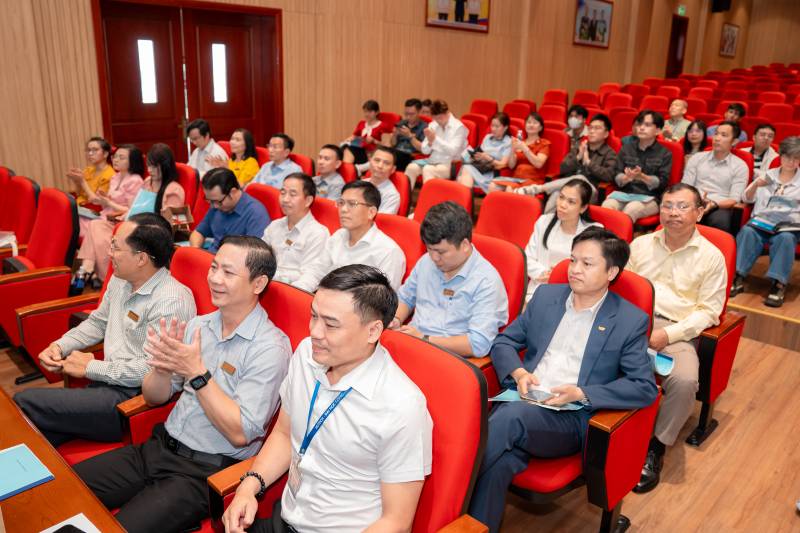 Khoảnh khắc giao lưu, trao đổi ý tưởng giữa các nhà khoa học, phản ánh hoạt động đổi mới sáng tạo đầy nhiệt huyết