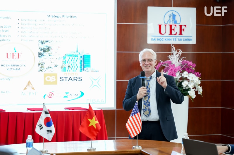 Đại diện đối tác cũng gửi lời cảm ơn đến UEF vì sự đón tiếp chu đáo và nhấn mạnh điểm chung trong triết lý giáo dục giữa hai trường là cùng hướng đến chất lượng, sự đổi mới và khả năng thích ứng trong môi trường toàn cầu hóa.