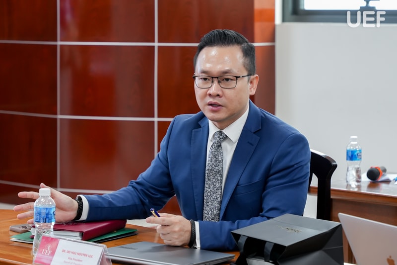 Phát biểu mở đầu chương trình, TS. Đỗ Hữu Nguyên Lộc đại diện UEF bày tỏ niềm vinh dự được đón tiếp đoàn đại biểu đối tác và nhấn mạnh ý nghĩa của sự kiện trong chiến lược mở rộng mạng lưới đối tác học thuật toàn cầu của Nhà trường. Hoạt động hợp tác giữa hai trường mở ra góc nhìn toàn diện về hành trình phát triển của UEF, trong đó quốc tế hóa là một trụ cột chiến lược xuyên suốt.