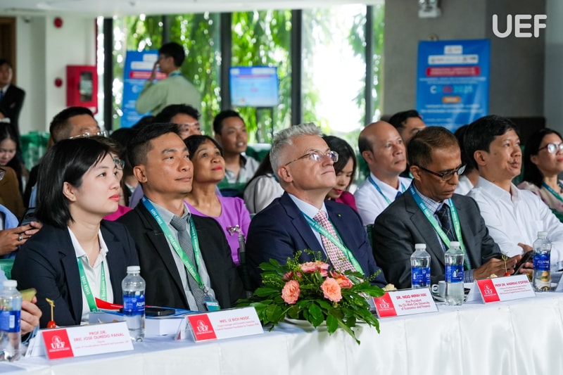 Về phía UEF có sự tham dự của TS. Ngô Minh Hải - Phó Hiệu trưởng; PGS.TS. Nguyễn Thành Luân - Phó trưởng phòng, Phòng Khoa học công nghệ và Dự án quốc tế cùng lãnh đạo, giảng viên các khoa, viện. Bên cạnh đó là GS. Andreas Stoffers - Giáo sư về Quan hệ kinh doanh Đông Nam Á, Đại học Khoa học Ứng dụng Kinh tế và Quản lý FOM - Đức; GS. Muslim Amin - Đại học Công nghệ Malaysia cùng đại diện các đơn vị đồng hành: Viện Phát triển Kinh tế số Việt Nam (VIDE), Trường Kinh doanh và Quản lý Geneva (SSBM), Hội TESOL Thành phố Hồ Chí Minh, Báo Sài Gòn Giải Phóng và Viện Friedrich Naumann Foundation for Freedom (FNF).