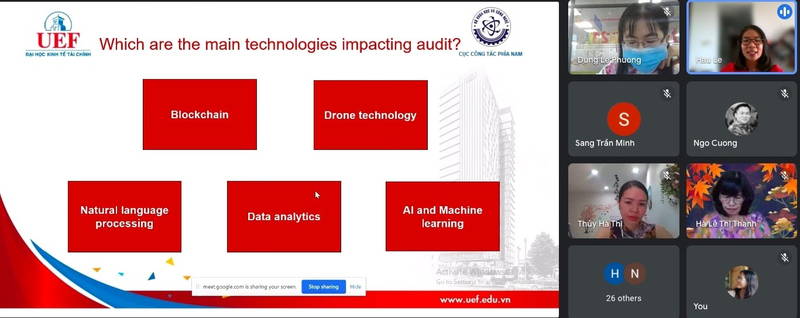 Tham luận 1 do bà Lê Thị Hậu trình bày đã chỉ ra những ứng dụng công nghệ phổ biến trong kiểm toán gồm: Blockchain, Drone Technology, Natural language processing, Data analytics, AI and Machine learning và phân tích về sự ảnh hưởng của những ứng dụng này.