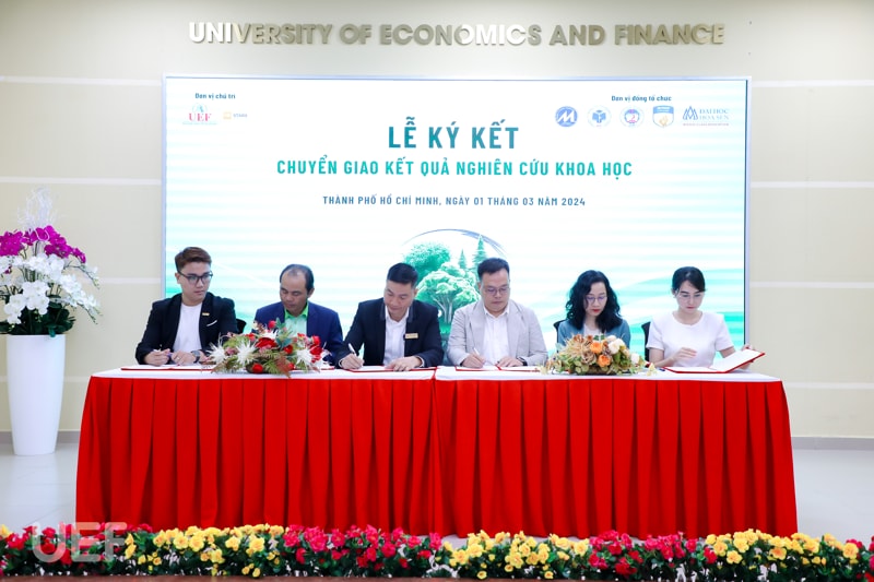Trong Hội thảo, Công ty TNHH Woosung Việt Nam ký kết chuyển giao Nghiên cứu khoa học “Phát triển kinh tế tuần hoàn trong nông nghiệp OCOP hướng tới phát triển bền vững tại tỉnh Đồng Tháp”; Công ty Công ty Cổ phần SMAR ký kết chuyển giao Nghiên cứu khoa học “Nghiên cứu các nhân tố ảnh hưởng đến hành vi mua hàng ngẫu hứng của giới trẻ TP.HCM trên các sàn thương mại điện tử”; AIM Academy ký kết chuyển giao Nghiên cứu khoa học “Chiến lược tiếp thị hỗn hợp ảnh hưởng đến ý định mua xanh: trường hợp ứng dụng đặt xe Xanh SM”; Công ty Cổ phần Thực phẩm G.C (GC Food) ký kết chuyển giao Nghiên cứu khoa học “Trách nhiệm xã hội của doanh nghiệp về môi trường đóng vai trò như thế nào đối với hành vi xanh của nhân viên”; Công ty Thạch Anh ký kết chuyển giao Nghiên cứu khoa học “Xây dựng mô hình tác động của người ảnh hưởng bền vững đến lòng trung thành thương hiệu”.