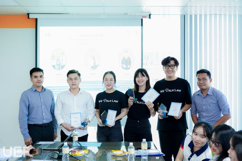 Các đề tài được trình bày tại Hội thảo gồm: (1) “Pháp luật về nhà ở hình thành trong tương lai tại Việt Nam” của bạn Phan Thị Hoài Linh – Ngành Luật Kinh tế, (2) “Hoàn thiện pháp luật Việt Nam về bảo vệ danh dự, nhân phẩm uy tín của cá nhân trên không gian mạng” của bạn Nguyễn Thị Anh Đào – Ngành Luật Kinh tế, (3) “Tăng cường kỹ năng phòng chống thông tin xấu độc trên mạng xã hội cho sinh viên UEF” của bạn Trần Tuấn Anh – Ngành Luật, (4) “Trách nhiệm bồi thường thiệt hại ngoài hợp đồng do người dưới 15 tuổi gây ra theo pháp luật dân sự Việt Nam” của bạn Lê Thanh Thảo – Ngành Luật Quốc tế, (5) “Kinh doanh vàng miếng và thực trạng tại Việt Nam” của bạn Phan Ngọc Diệp – Ngành Luật Kinh tế.