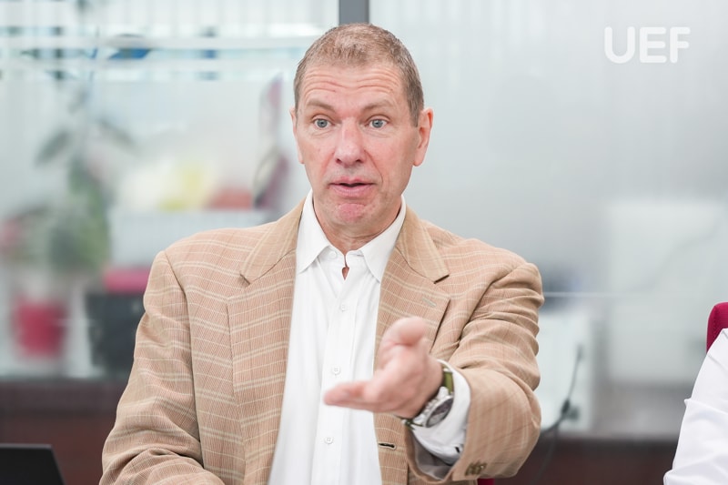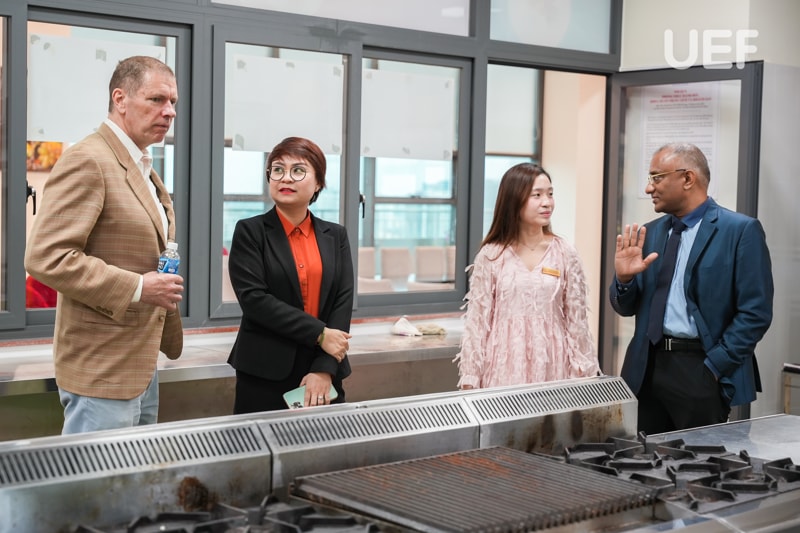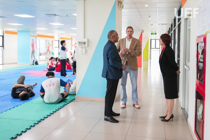 Buổi gặp gỡ và làm việc của UEF cùng đố tác diễn ra thành công tốt đẹpVề phía UEF có sự đón tiếp của TS. Đỗ Hữu Nguyên Lộc - Phó Hiệu trưởng; TS. Majo George - Trưởng khoa, Khoa Kinh tế; TS. Nguyễn Kim Thoa - Phó Viện trưởng Viện Quốc tế; PGS.TS. Nguyễn Thành Luân - Phó Trưởng Phòng Khoa học công nghệ và Dự án quốc tế.