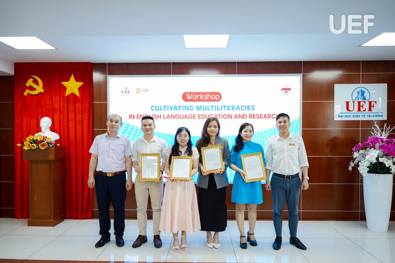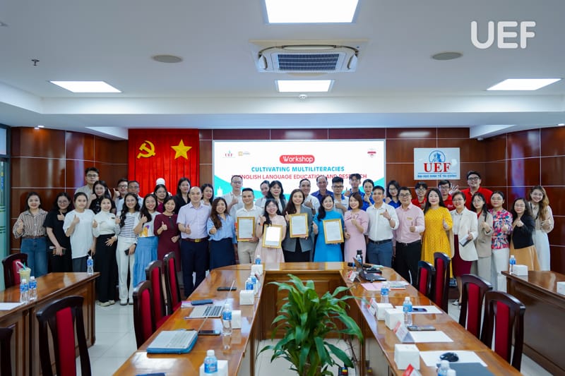 Tham dự workshop có TS. Ngô Minh Hải - Phó Hiệu trưởng UEF, PGS.TS. Nguyễn Thành Luân - Phó Trưởng phòng Khoa học công nghệ và Dự án quốc tế cùng Ban chủ nhiệm Khoa Tiếng Anh và đông đảo giảng viên Khoa.