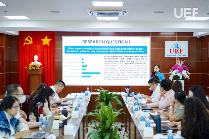 Đóng góp vào mảng phát triển năng lực nghiên cứu cho giảnh viên, ThS. Ngô Nguyễn Thiên Duyên đã trình bày đề tài “Empowering EFL Teachers: A Practical Guide to Research Literacy", cung cấp các công cụ và phương pháp giúp giảng viên Ngôn ngữ Anh phát triển tư duy nghiên cứu, từ đó cải tiến hoạt động giảng dạy và đóng góp vào kho tàng tri thức của ngành.