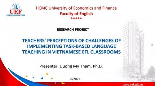 Trong buổi nghiệm thu đề tài nghiên cứu khoa học cấp trường của khoa Tiếng Anh sáng nay (18/8), TS. Dương Mỹ Thẩm đã trình bày nghiên cứu về phương pháp giảng dạy ngôn...