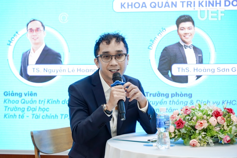 Mang đến chương trình là những chia sẻ truyền cảm hứng từ ThS. Hoàng Sơn Giang - Trưởng phòng Truyền thông & Dịch vụ KHCN, Trung tâm Phát triển Khoa học và Công nghệ Trẻ Thành Đoàn TP.HCM; TS. Nguyễn Lê Hoàng Long - Giảng viên Khoa Quản trị kinh doanh UEF và anh Hồ Quý Trọng - Giám đốc Công ty TNHH Tổ tượng Smillie, cựu sinh viên khóa 2019.