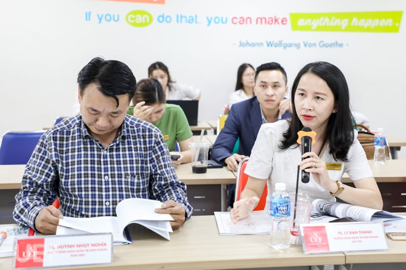 Hội đồng nghiệm thu của Khoa Quản trị kinh doanh gồm: TS. Lý Đan Thanh - Chủ tịch, TS. Huỳnh Nhựt Nghĩa - Phản biện, ThS. Trần Hoàng Nam - Ủy viên, thư ký.