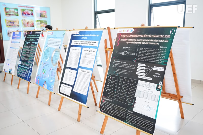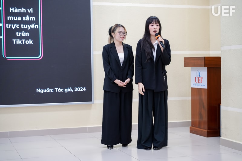 Một trong những điểm sáng của vòng Chung kết là đề tài đã đạt cao nhất cuộc thi - giải Nhì (không có giải Nhất) - “Tác động của Shoppertainment đến hành vi mua sắm trực tuyến của giới trẻ trên nền tảng TikTok”. Nhóm nghiên cứu đã khai thác một hiện tượng đang bùng nổ trên thị trường thương mại điện tử khi mà giải trí và mua sắm đang dần hòa quyện vào nhau. Không chỉ dừng lại ở việc phân tích hành vi tiêu dùng, nhóm còn làm nổi bật được các yếu tố thị giác, âm thanh, kịch bản tương tác,... - những “gia vị” làm nên hiệu ứng cuốn hút của Shoppertainment. Đây là một hướng đi thể hiện rõ sự nhạy bén của sinh viên UEF với chuyển động của thị trường, đặc biệt là khi TikTok đang không ngừng mở rộng “sân chơi” mua sắm cho thế hệ Gen Z.