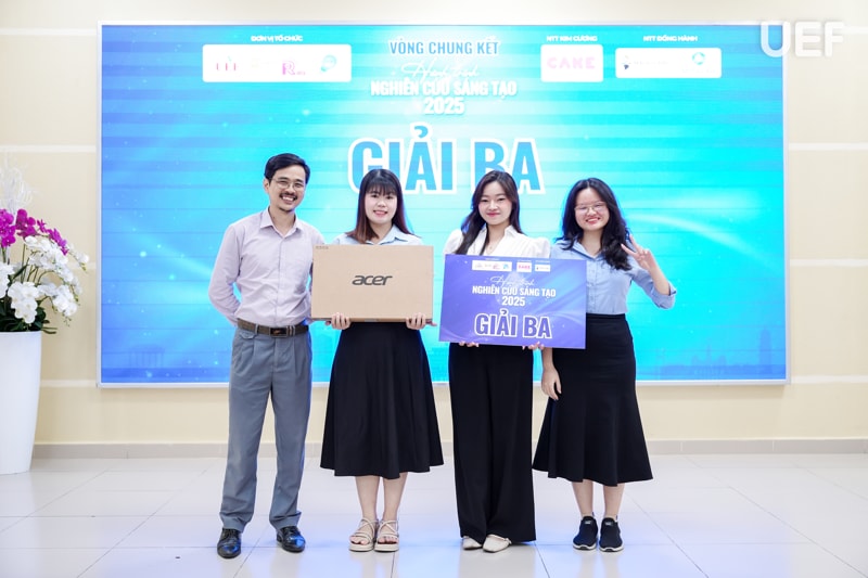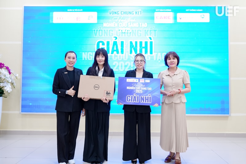- Giải Triển vọng nhất: Đề tài "Ảnh hưởng của thời gian sử dụng TikTok đến khả năng kiểm soát sự chú ý của sinh viên UEF".