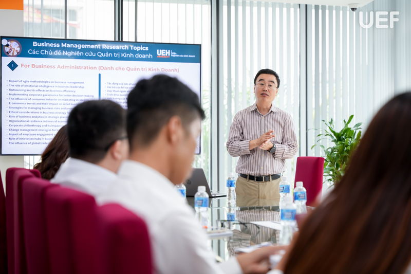 Một trong những điểm nhấn quan trọng của buổi chia sẻ là việc tránh đi theo lối mòn nghiên cứu cũ. Diễn giả đã gợi ý nhiều hướng nghiên cứu cấp thiết trong lĩnh vực quản trị kinh doanh như: Cuộc cách mạng trong hoạt động và chiến lược doanh nghiệp nhờ trí tuệ nhân tạo (AI); Vai trò của công nghệ blockchain trong quản trị kinh doanh; Ảnh hưởng của chuyển đổi số đến văn hóa tổ chức...