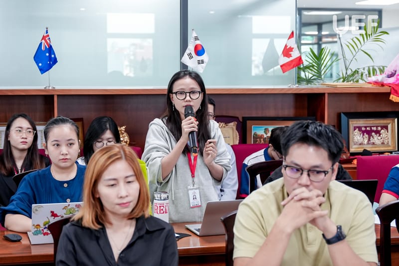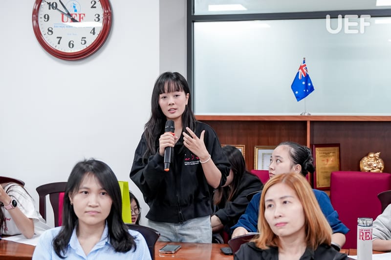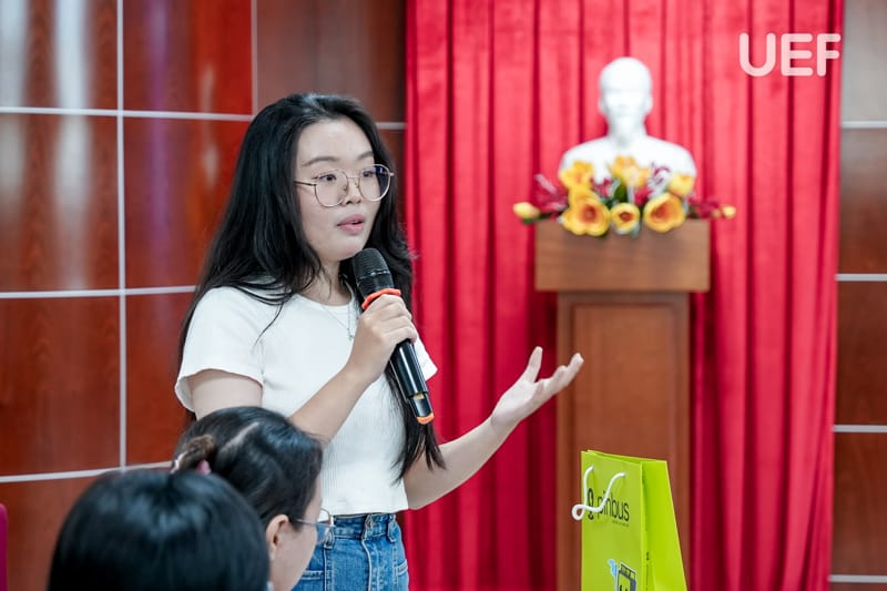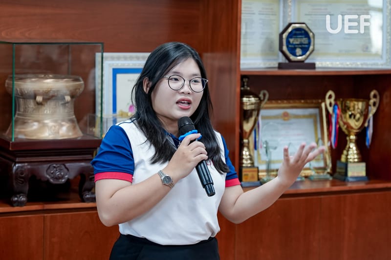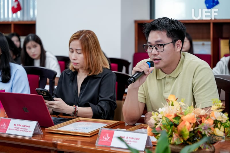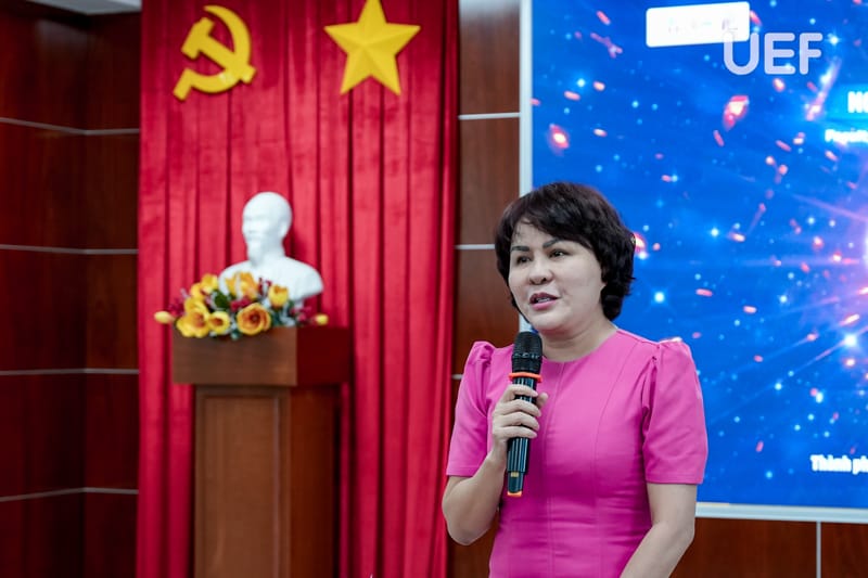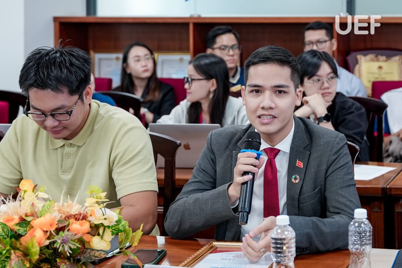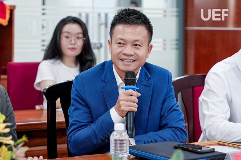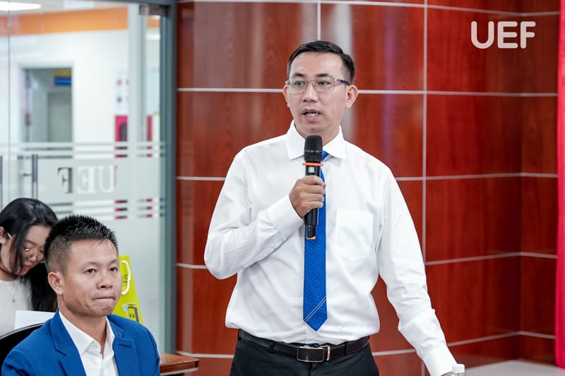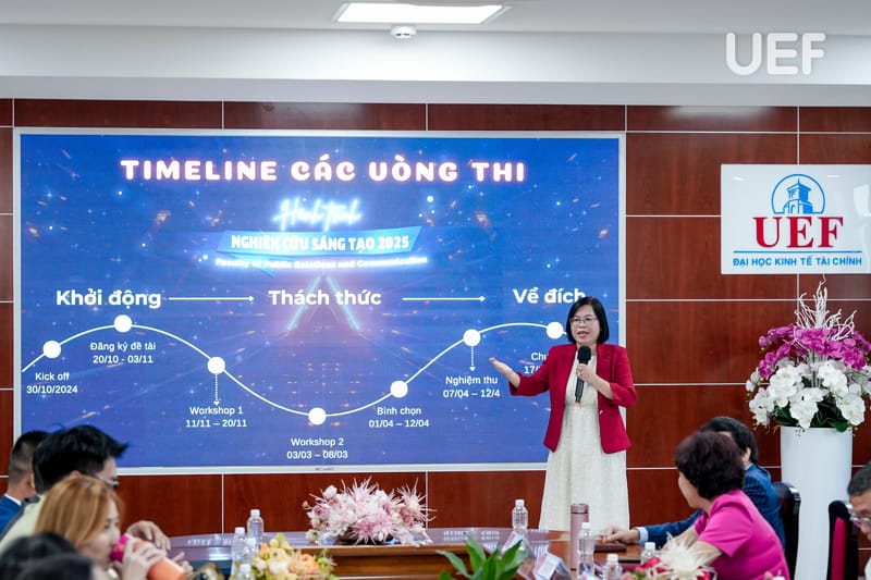 Phát biểu mở đầu chương trình, ông Đỗ Quốc Anh đã giới thiệu khái quát thông tin về UEF và nhấn mạnh mục tiêu của hành trình nghiên cứu khoa học sáng tạo 2025 là kết nối ý tưởng đề tài của sinh viên với kinh nghiệm thực tiễn từ doanh nghiệp. Đây là một điểm mới trong cuộc thi khi Khoa PRC đã kết nối với các công ty truyền thông để đồng hành, tài trợ chi phí nghiên cứu, góp ý và định hướng trong quá trình thực thi đề tài của sinh viên.