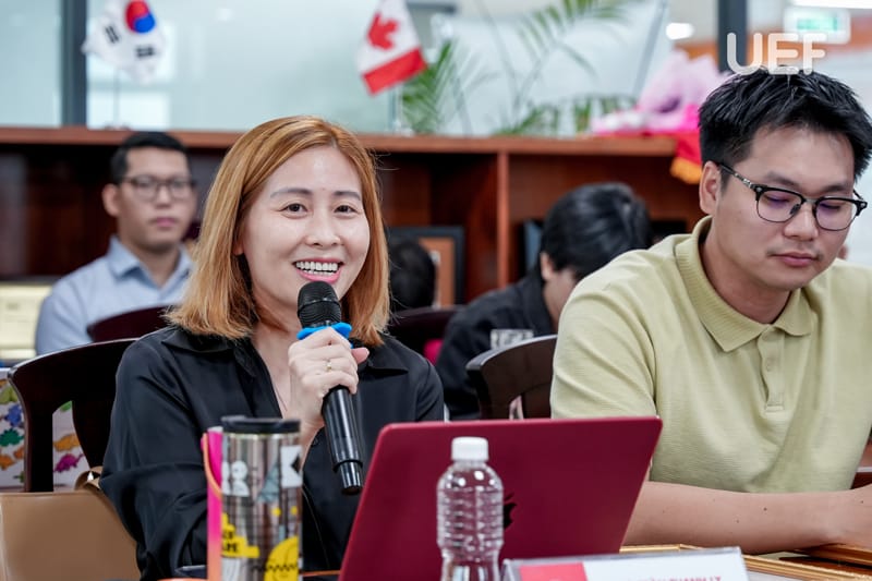 Về phía UEF có ông Đỗ Quốc Anh - Phó Chủ tịch Hội đồng trường; PGS.TS. Hoàng Thị Hồng Hà - Trưởng khoa Quan hệ công chúng và Truyền thông, Giám đốc Trung tâm Ứng dụng và Phát triển Công nghệ truyền thông; TS. Đặng Anh Lực - Phó Trưởng khoa Quan hệ công chúng và Truyền thông; ThS. Nguyễn Thị Bích Vân - Phó Trưởng khoa Quan hệ công chúng và Truyền thông; TS. Nguyễn Thành Luân - Phó Trưởng phòng Khoa học công nghệ và Dự án quốc tế; ThS. Nguyễn Thái Hà - Phó Giám đốc Trung tâm Hợp tác doanh nghiệp; ông Nguyễn Ngọc Đức - Phó Giám đốc Trung tâm Ứng dụng và Phát triển Công nghệ truyền thông.