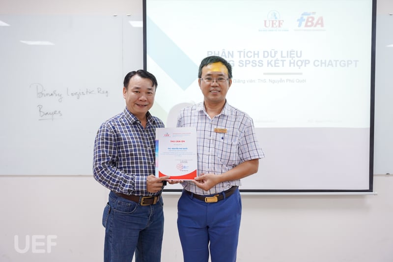 Để UEFers có thể hiểu hơn về khía cạnh này, chiều ngày 13/12, Khoa Quản trị kinh doanh (FBA) đã tổ chức buổi workshop hướng dẫn sinh viên nghiên cứu khoa học buổi 3: Xử lý dữ liệu với SPSS với chủ đề “Phân tích dữ liệu SPSS kết hợp với Chat GPT”. Đây là hoạt động nằm trong chuỗi chương trình trang bị kỹ năng nghiên cứu khoa học cho sinh viên Nhà FBA.