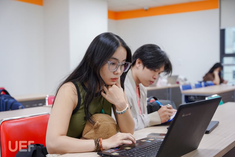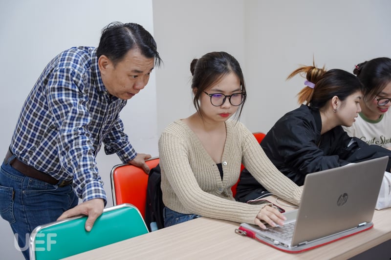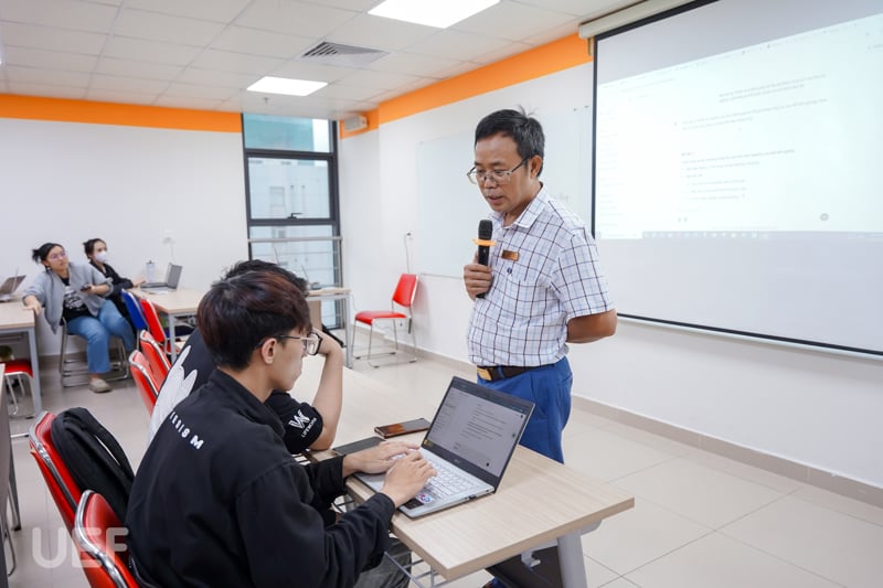 Bước vào nội dung chính, thầy Phú Quới cùng sinh viên bắt đầu thực hành sử dụng công cụ SPSS để phân tích các dữ liệu có sẵn. Sinh viên UEF đã có những trải nghiệm giá trị về các kiến thức chuyên môn thuộc về lĩnh vực nghiên cứu thông qua việc phân tích thực tế các dữ liệu thu thập được. Thầy hướng dẫn các bạn từng bước thao tác trên phần mềm SPSS, từ việc nhập dữ liệu, lựa chọn phương pháp phân tích phù hợp đến việc giải thích kết quả và đưa ra kết luận. Các bạn được khuyến khích đặt câu hỏi, thảo luận và chia sẻ ý kiến của mình trong suốt quá trình thực hành.