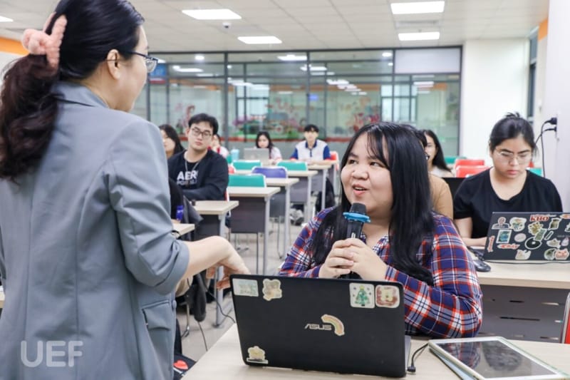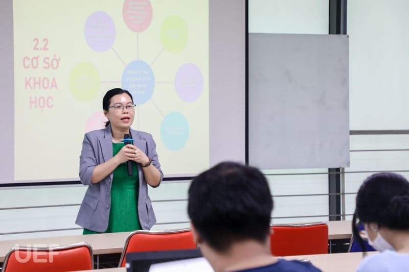 Trong suốt phần trình bày, ThS. Nguyễn Thị Bích Vân thường xuyên hướng dẫn UEFers cách ứng dụng các lý thuyết nền tảng vào bài làm của mình cũng như đưa ra ví dụ cụ thể từ chính đề tài của các bạn. Hình thức này đã góp phần giúp những nhà nghiên cứu trẻ có thêm cảm hứng, thông tin và chất liệu để tạo ra những công trình nghiên cứu chất lượng nhất.