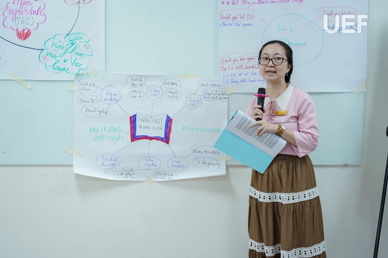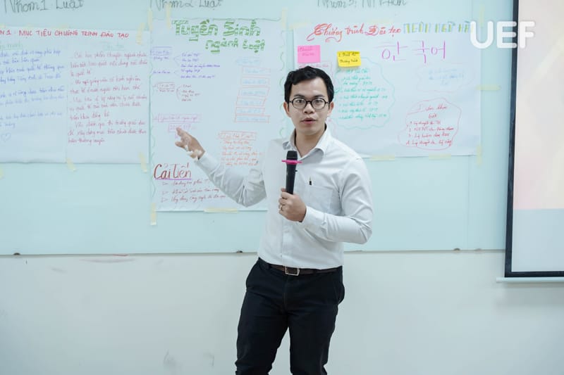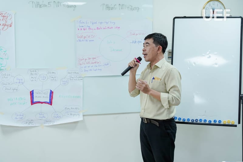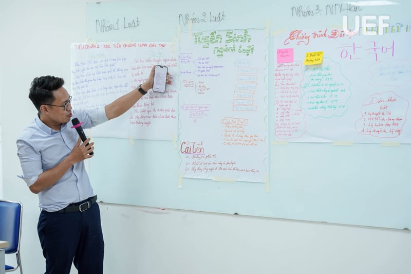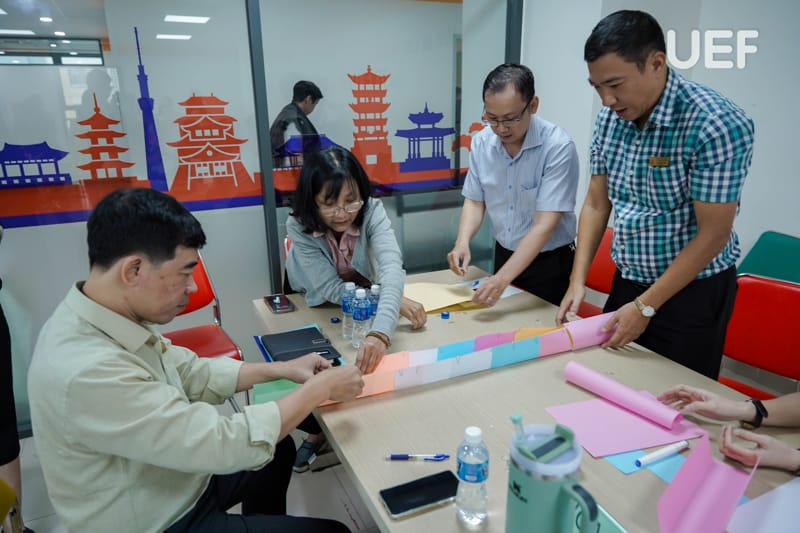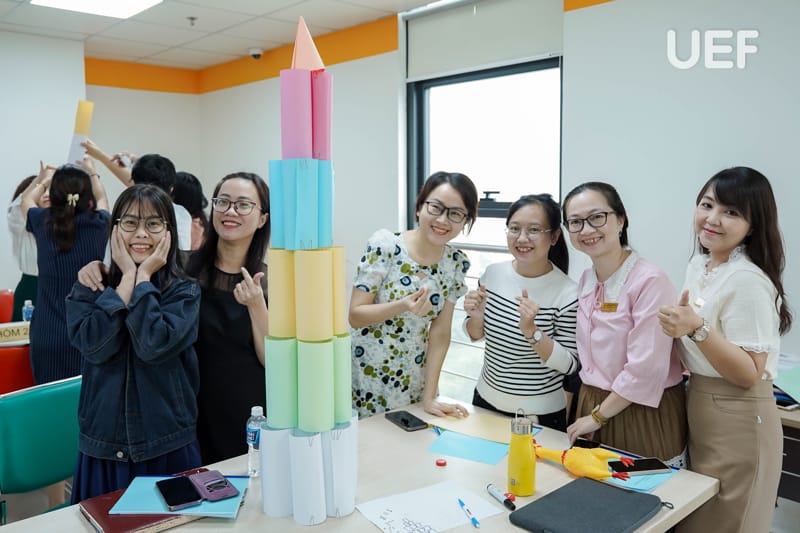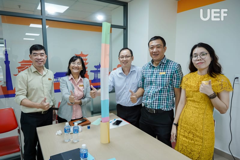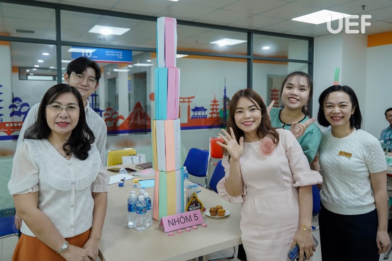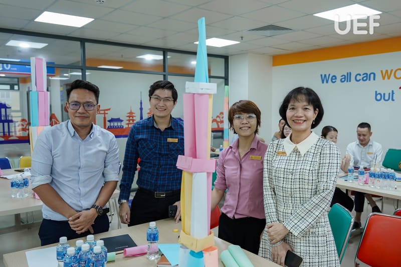 During the training session, Dr. Ly Thien Trang facilitated interactive group activities to help faculty members grasp the core principles of quality assurance in alignment with accreditation criteria. Participants engaged in creative exercises, illustrating diverse perspectives on higher education quality. Additionally, a tower-building challenge encouraged innovation, teamwork, and collaboration, emphasizing essential skills for achieving accreditation goals.
