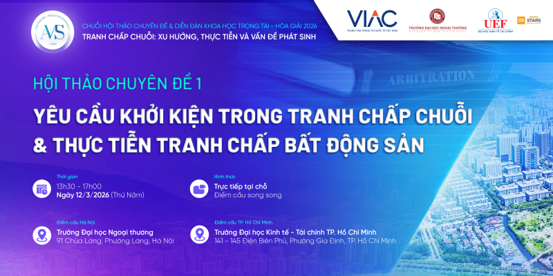 Nhằm trao đổi, thảo luận về các nội dung nói trên, đồng thời có các khuyến nghị phù hợp về cách thức giải quyết yêu cầu khởi kiện trong các tranh chấp hàng loạt, theo chuỗi, Trường Đại học Kinh tế - Tài chính TP. Hồ Chí Minh (UEF) phối hợp cùng Trung tâm Trọng tài Quốc tế Việt Nam (VIAC) và Trường Đại học Ngoại thương (FTU) tổ chức Hội thảo chuyên đề “Yêu cầu khởi kiện trong tranh chấp chuỗi và thực tiễn tranh chấp bất động sản”.