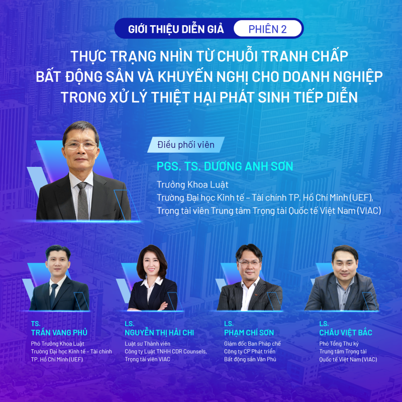 2. PGS. TS. Dương Anh Sơn – Trưởng Khoa Luật, Trường Đại học Kinh tế – Tài chính Tp. Hồ Chí Minh (UEF), Trọng tài viên VIAC