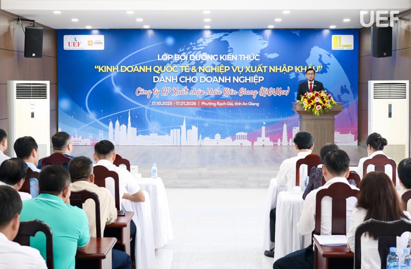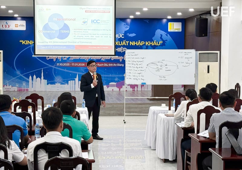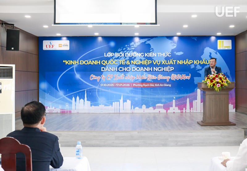 Sáng ngày 17/10, Trung tâm Hợp tác doanh nghiệp UEF đã khai giảng lớp bồi dưỡng kiến thức “Kinh doanh quốc tế và nghiệp vụ xuất nhập khẩu” cho Công ty Cổ phần Xuất nhập khẩu Kiên Giang (KiGiMex). Chương trình diễn ra xuyên suốt từ ngày 17/10/2025 đến 17/01/2026, gồm 10 chuyên đề với định hướng thực tiễn – ứng dụng cao, khẳng định cam kết đồng hành của UEF trong công tác đào tạo, bồi dưỡng nhân sự cho doanh nghiệp.
