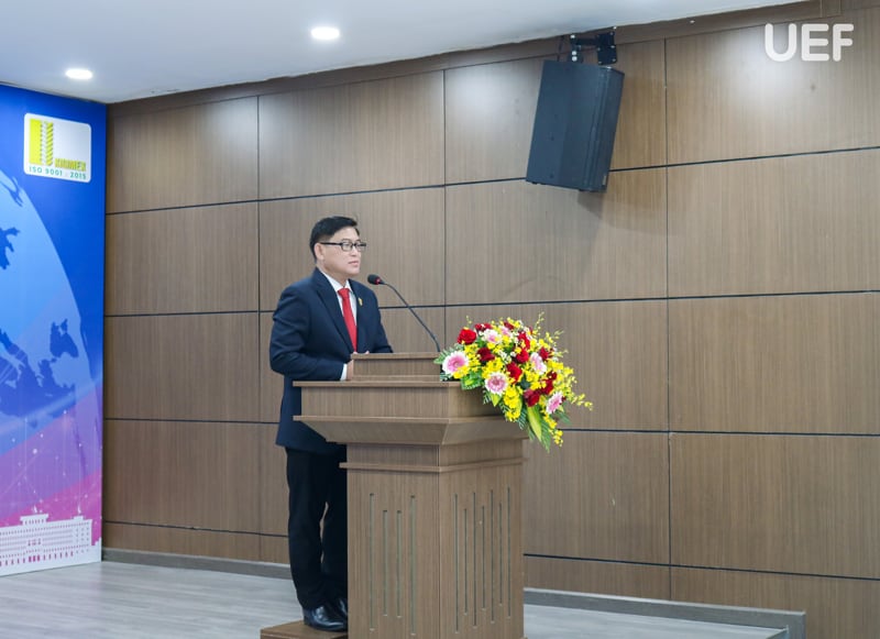 Trong phát biểu chúc mừng khai giảng, TS. Nhan Cẩm Trí ghi nhận nỗ lực tiên phong của KiGiMex trong việc đầu tư nâng cao năng lực đội ngũ, đồng thời nhấn mạnh vai trò liên kết Nhà trường – Doanh nghiệp trong phát triển nguồn nhân lực xuất nhập khẩu và kinh doanh quốc tế. Lãnh đạo UEF khẳng định Nhà trường luôn sẵn sàng thiết kế các chương trình “đo ni đóng giày”, cập nhật kiến thức chuyên môn và kỹ năng thực hành theo nhu cầu thực tế của doanh nghiệp, kỳ vọng học viên sẽ vận dụng linh hoạt kiến thức vào hoạt động sản xuất – kinh doanh.