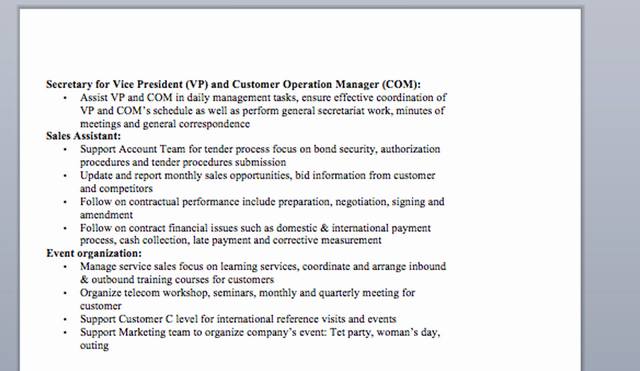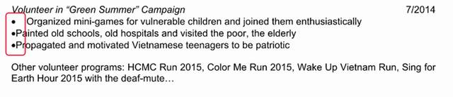 Đừng dùng quá nhiều bullet point khi trình bày CV của bạn, sẽ gây nên sự rối mắt và không đồng bộ. Ngoài ra, hãy để ý tránh những lỗi nhỏ nhặt như bên dưới đây, khi có những bullet point lại có kích cỡ lớn hơn những bullet point khác.