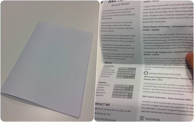 Bạn nên tránh việc nộp CV bản in chất lượng tồi, nhòe màu, độ nét kém, giấy mỏng, ố vàng (nên dùng máy in laser và loại giấy dày để in).