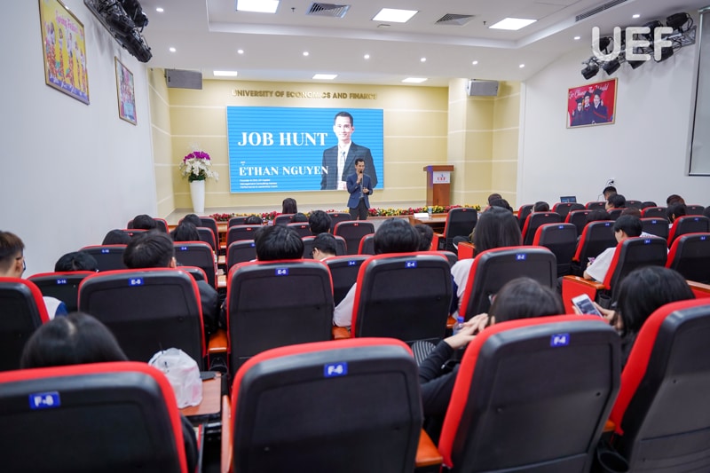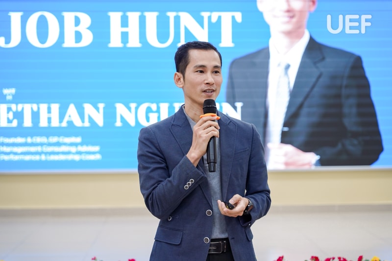 Ông Ethan Nguyen đã hướng dẫn sinh viên xây dựng chiến lược tìm việc hiệu quả với ba bước chính: Lập kế hoạch nghề nghiệp rõ ràng, chuẩn bị kỹ lưỡng hồ sơ xin việc và kỹ năng phỏng vấn, và cuối cùng là hành động quyết liệt, chủ động tìm kiếm cơ hội nghề nghiệp.