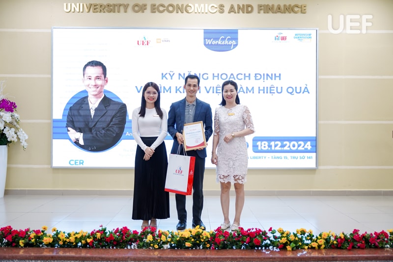 Tham gia chương trình có ThS. Nguyễn Thị Kim Loan – Phó Giám đốc Trung tâm Hợp tác doanh nghiệp, cô Hoàng Thị Hằng – Trợ lý Trưởng khoa Khoa Công nghệ thông tin. Diễn giả chính của chương trình là ông Nguyễn Chí Thành (Ethan Nguyen) – CEO CP Capital, Phó Chủ tịch JCI Central Saigon, nguyên Trưởng phòng Nhân sự KPMG.