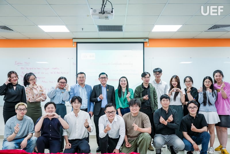 Đại diện UEF và Công ty TNHH InBold gửi lời chúc mừng đến các học viên đã hoàn thành khóa đào tạo