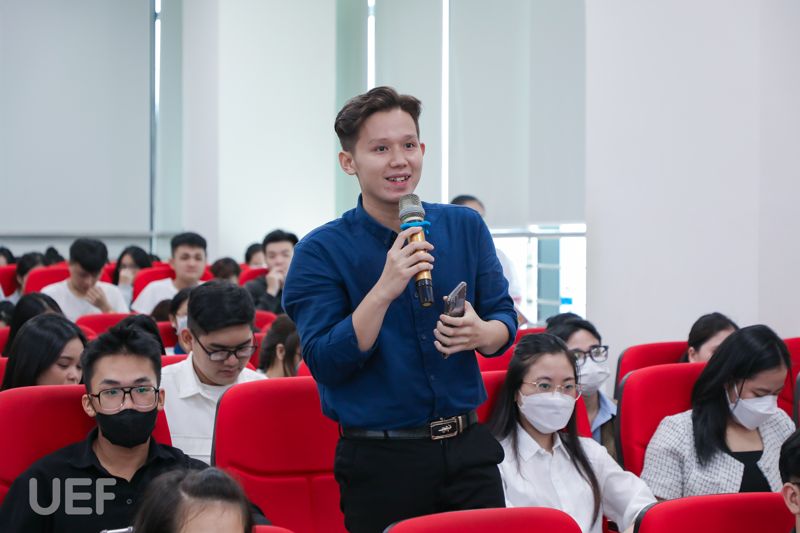 Tiếp nối chương trình, TS. Đặng Anh Lực tiến hành phổ biến chương trình thực tập cho các bạn sinh viên năm tư, chuẩn bị khởi động chuyến học tập doanh nghiệp 3 tháng sắp tới. Những thông tin như đăng ký doanh nghiệp thực tập, công tác tổ chức và quản lý sinh viên tham gia kỳ thực tập, đánh giá học phần, xử lý vi phạm trong thời gian thực tập,... đã được thầy làm rõ. Nắm được những nội dung này, UEFers sẽ có những bước triển khai đầu tiên trong quá trình thực tập thật thuận lợi.