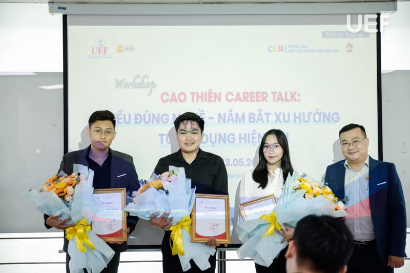 Sáng ngày 13/5, Trung tâm Hợp tác doanh nghiệp đã tổ chức workshop “Cao Thiên Career Talk: Hiểu đúng nghề - Nắm bắt xu hướng tuyển dụng hiện đại” với sự đồng hành của doanh nghiệp trong lĩnh vực bất động sản. Những chia sẻ thực tế giúp sinh viên cập nhật nhiều vị trí nghề nghiệp của ngành học này trong thời buổi hiện nay.